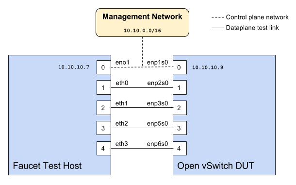Commands to be executed on each side - Faucet Test host and Open vSwitch.